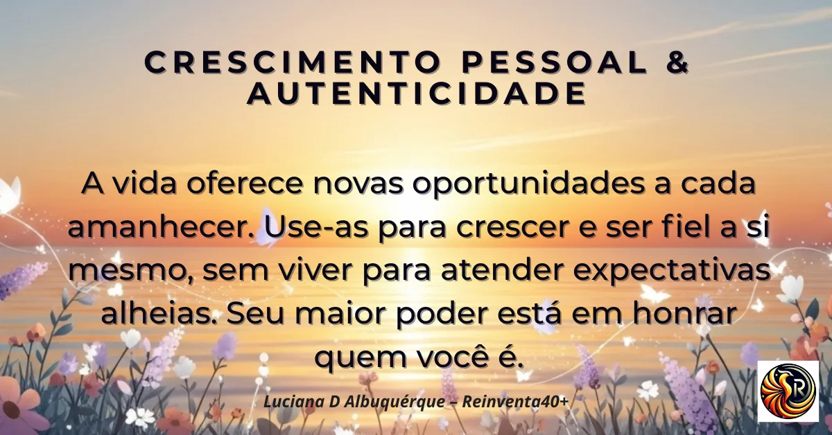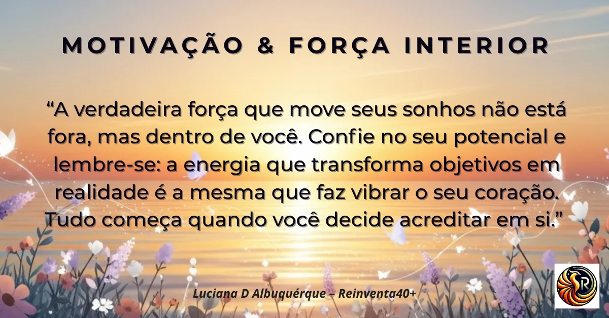 Todos os recomeços começam de dentro. Aqui, no Reinventa40+, acreditamos que a transformação pessoal e profissional só acontece quando cultivamos clareza, motivação e equilíbrio. O autoconhecimento é a base fundamental para qualquer mudança significativa na vida. Por isso, criamos este espaço para compartilhar, toda semana, uma nova mensagem de inspiração, reflexão e força interior para seguir em frente em suas jornadas de reinvenção.